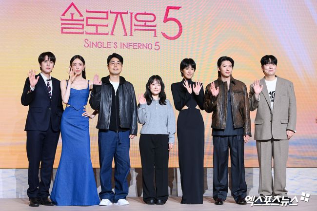 14일 오전 서울 마포구 호텔 나루 서울 엠갤러리에서 넷플릭스 '솔로지옥 5' 제작발표회가 열렸다. 가수 규현, 배우 이다희, 김재원, 박수지 PD, 방송인 홍진경, 덱스, 한해가 포토타임을 갖고 있다. 고아라 기자 iknow@xportsnews.com