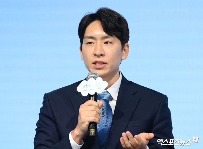 14일 오후 서울 영등포구 페어몬트 앰배서더 서울에서 JTBC '2026 밀라노 코르티나 동계올림픽' 기자간담회가 열렸다. 이승훈 해설위원이 인사를 하고 있다. 고아라 기자 iknow@xportsnews.com