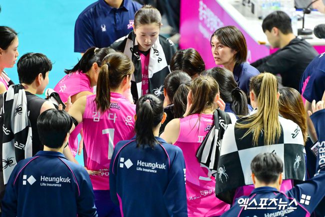 14일 오후 인천 부평구 삼산월드체육관 열린 '진에어 2025-2026 V-리그' 흥국생명과 한국도로공사의 경기, 흥국생명 요시하라 토모코 감독이 작전타임을 갖고 있다. 김한준 기자 kowel@xportsnews.com