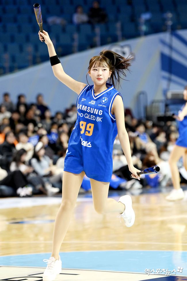 22일 오후 서울 송파구 잠실실내체육관에서 열린 2025-2026 LG전자 프로농구 서울 삼성과 대구 한국가스공사의 경기, 신서윤 치어리더가 열띤 응원을 펼치고 있다. 고아라 기자 iknow@xportsnews.com