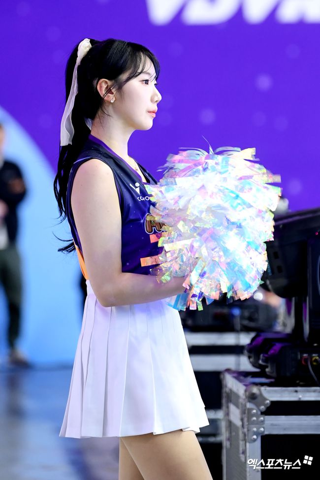25일 오후 강원도 춘천 호반체육관에서 열린 ‘진에어 2025-2026 V리그’ 올스타전, 감서윤 치어리더가 열띤 응원을 펼치고 있다. 고아라 기자 iknow@xportsnews.com
