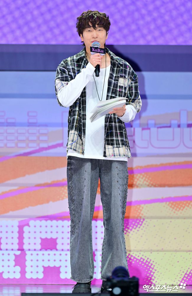 26일 오후 서울 광장동 예스24라이브홀에서 그룹 키키(지유 이솔 수이 하음 키야 / KiiiKiii) 미니 2집 '델룰루 팩(Delulu Pack)' 쇼케이스가 진행됐다. 이날 쇼케이스에 참석한 유재필이 사회를 보고 있다. 김한준 기자 kowel@xportsnews.com