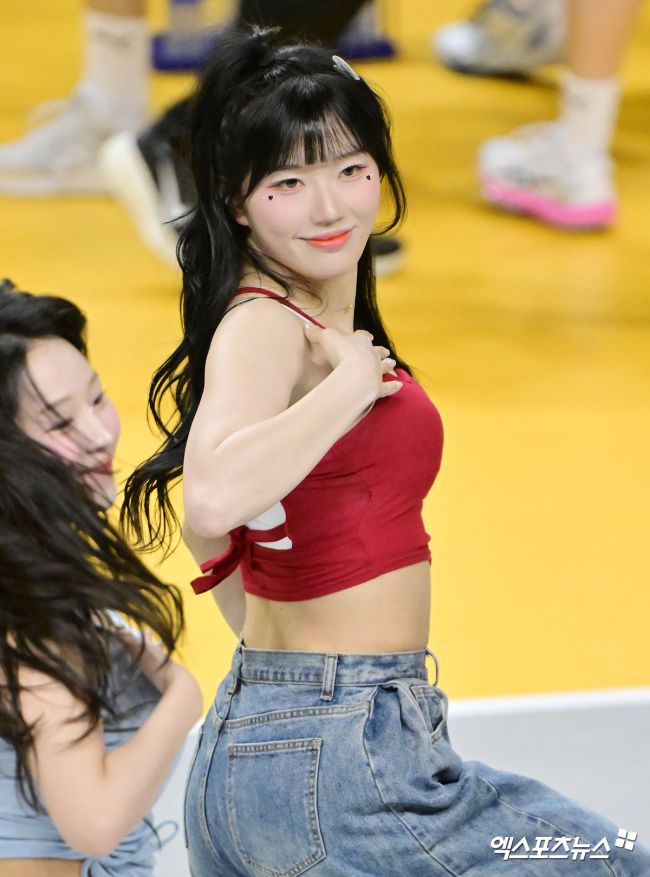 24일 오후 경기도 의정부 경민대체육관에서 열린 '진에어 2025-2026 V-리그' KB손해보험과 삼성화재의 경기, 조다정 치어리더가 멋진 공연을 선보이고 있다. 김한준 기자 kowel@xportsnews.com