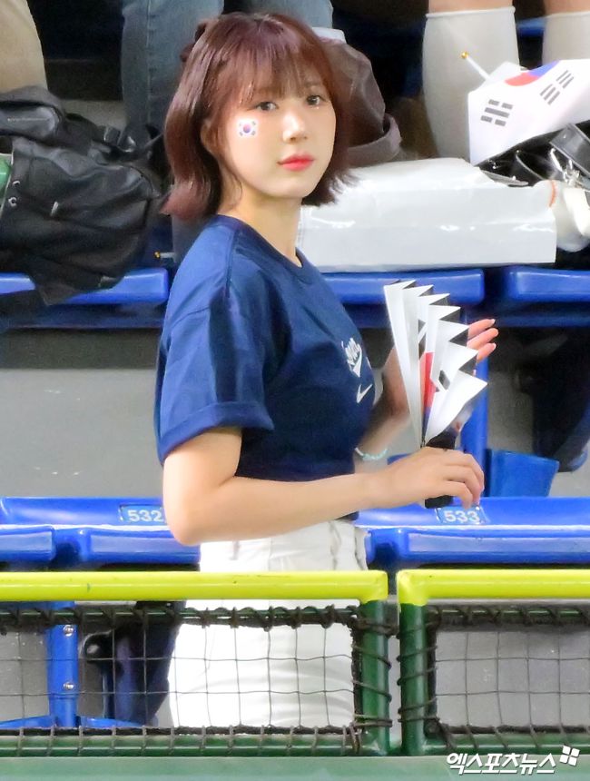 7일 오후 일본 도쿄돔에서 열린 2026 월드베이스볼클래식(WBC) C조 한국과 일본의 경기, 이금주 치어리더가 열띤 응원을 선보이고 있다. 김한준 기자 kowel@xportsnews.com