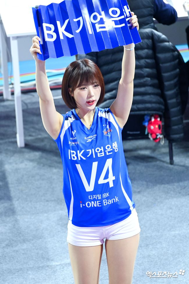10일 오후 인천 부평구 삼산월드체육관 열린 '진에어 2025-2026 V-리그' 흥국생명과 IBK기업은행의 경기, 이금주 치어리더가 열띤 응원을 펼치고 있다. 고아라 기자 iknow@xportsnews.com