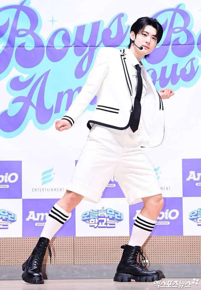 18일 오전 서울 쌍문동 세그루패션디자인고등학교에서 그룹 엠비오(AmbiO) 데뷔 앨범 'Boys Be Ambitious(보이즈 비 앰비셔스' 발매 기념 웹예능 '오늘 우리 학교는' 촬영 현장 공개가 진행됐다. 이날 행사에 참석한 엠비오 루원이 포토타임을 갖고 있다. 박지영 기자 jypark@xportsnews.com