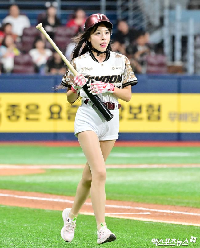 25일 오후 서울 구로구 고척스카이돔에서 열린 '2025 신한 SOL Bank KBO리그' KIA 타이거즈와 키움 히어로즈의 경기, 홍예빈 치어리더가 배트를 정리하고 있다. 김한준 기자 kowel@xportsnews.com