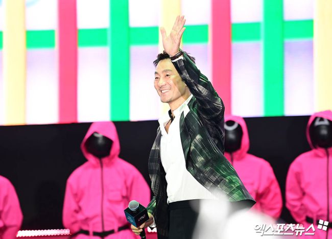 28일 오후 서울광장에서 넷플릭스 '오징어 게임' 시즌3 피날레 팬 이벤트가 진행됏다. 이날 행사에 참석한 배우 박해수가 인사하고 있다. 박지영 기자 jypark@xportsnews.com