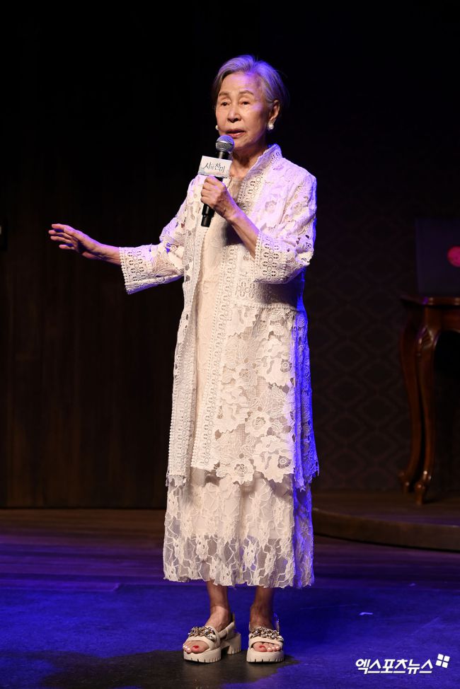 10일 오후 서울 강서구 LG아트센터 U+스테이지에서 연극 '사의 찬미' 프레스콜이 열렸다. 이날 프레스콜에 참석한 배우 손숙이 진행을 하고 있다. 고아라 기자 iknow@xportsnews.com