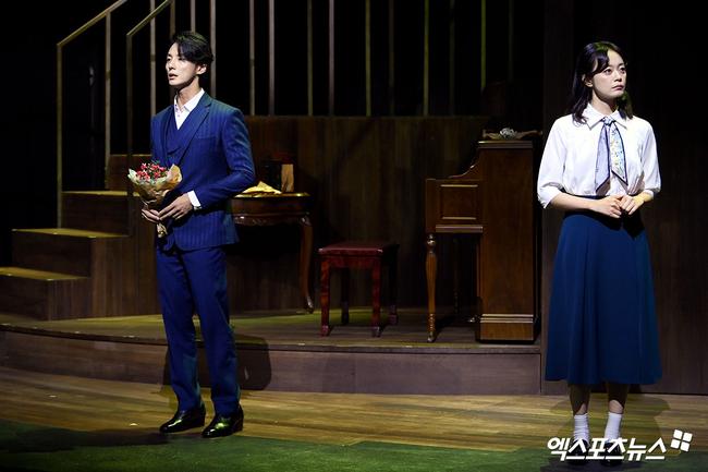 10일 오후 서울 강서구 LG아트센터 U+스테이지에서 연극 '사의 찬미' 프레스콜이 열렸다. 이날 프레스콜에 참석한 배우 윤시윤, 전소민이 극 중 한 장면을 선보이고 있다. 고아라 기자 iknow@xportsnews.com