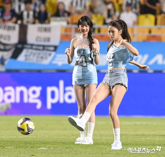 30일 오후 수원월드컵경기장에서 '2025 쿠팡플레이 시리즈' 팀 K리그와 뉴캐슬 유나이티드 FC의 경기, 그룹 아이브(IVE) 안유진이 시축을 하고 있다. 고아라 기자 iknow@xportsnews.com