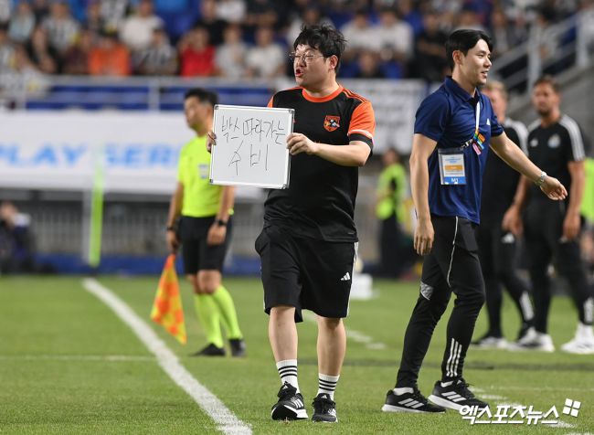 30일 오후 수원월드컵경기장에서 '2025 쿠팡플레이 시리즈' 팀 K리그와 뉴캐슬 유나이티드 FC의 경기, 유튜버 감스트가 작전지시를 하고 있다. 고아라 기자 iknow@xportsnews.com