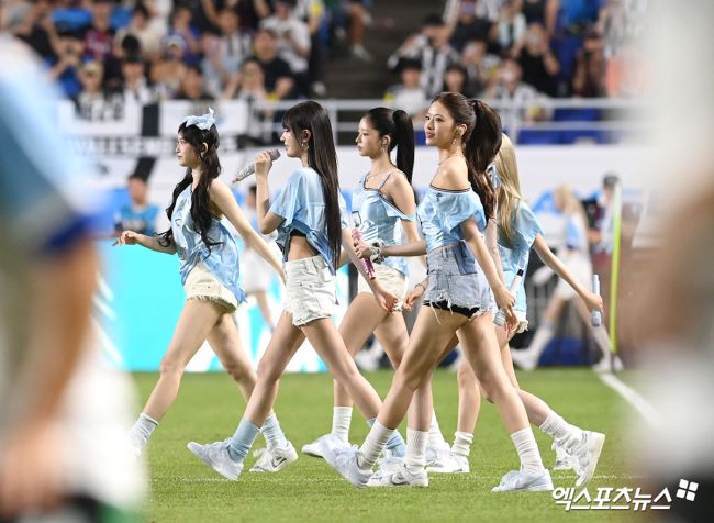 30일 오후 수원월드컵경기장에서 '2025 쿠팡플레이 시리즈' 팀 K리그와 뉴캐슬 유나이티드 FC의 경기, 그룹 아이브(IVE/안유진 가을 레이 장원영 리즈 이서)가 하프타임 공연을 펼치고 있다. 고아라 기자 iknow@xportsnews.com