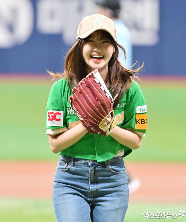 3일 오후 서울 구로구 고척스카이돔에서 열린 '2025 신한 SOL Bank KBO리그' 롯데 자이언츠와 키움 히어로즈의 경기, 경기 전 가수 겸 배우 최유정이 시구에 임하고 있다. 김한준 기자 kowel@xportsnews.com