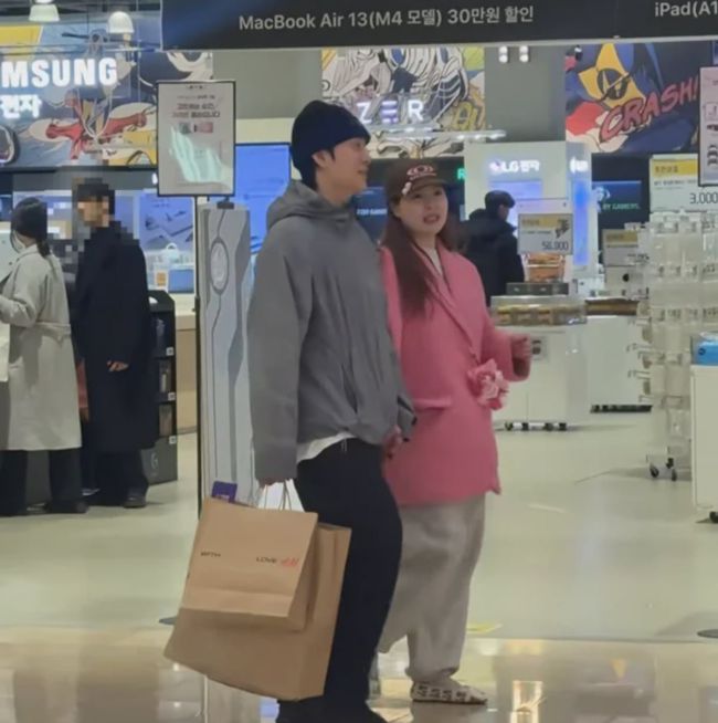 사진=온라인 커뮤니티 갈무리 가수 현아와 용준형 부부가 쇼핑몰에서 일상을 보내는 모습이 포착됐다. 최근 한 누리꾼은 본인의 SNS 계정에 "지난 17일 한국의 한 쇼핑몰에서 현아와 용준형을 봤다"라는 내용의 글과 영상을 게시했다. 해당 영상에는 두 사람이 나란히 매장을 둘러보며 물건을 살피는 장면이 담겼다. 현아는 분홍색 오버핏 코트에 회색 트레이닝 팬츠를