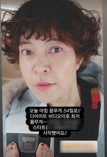 개그우먼 겸 배우 조혜련이 다이어트에 대성공한 근황을 전했다. 조혜련은 24일 개인 채널에 “오늘 아침 몸무게 54kg! 다이어트 비디오 이후 최저 몸무게~”라는 글과 함께 사진을 게재했다. 공개된 사진 속 조혜련은 아침부터 체중계 위에 올라선 모습이다. 체중계에는 54kg이라는 몸무게가 선명하게 찍혀 있어 눈길을 끈다. 또 조혜련은 다이어트로 인해 볼살이