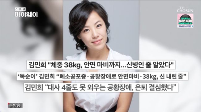 김민희 “母에 학대→체중 38kg... 대사 4줄도 못 외우는 공황장애” 충격 (‘마이웨이’) [어저께TV]