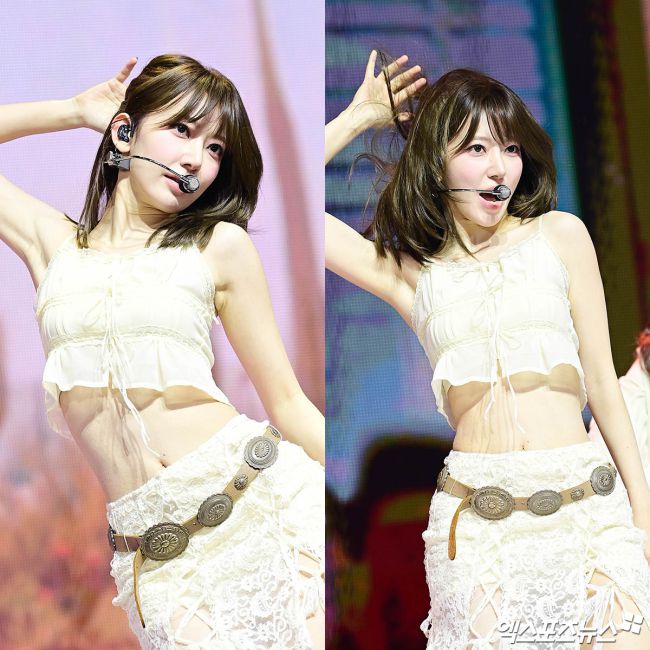 14일 오전 서울 광장동 예스24라이브홀에서 르세라핌(LE SSERAFIM) 'HOT(핫)' 발매 기념 쇼케이스가 열렸다. 이날 쇼케이스에 참석한 르세라핌 사쿠라가 무대를 선보이고 있다. 163cm 믿기지 않는 완벽 비율 청순 그 자체 무대 위에서는 치명적인 눈빛 군살 제로 몸매 박지영 기자 jypark@xportsnews.com