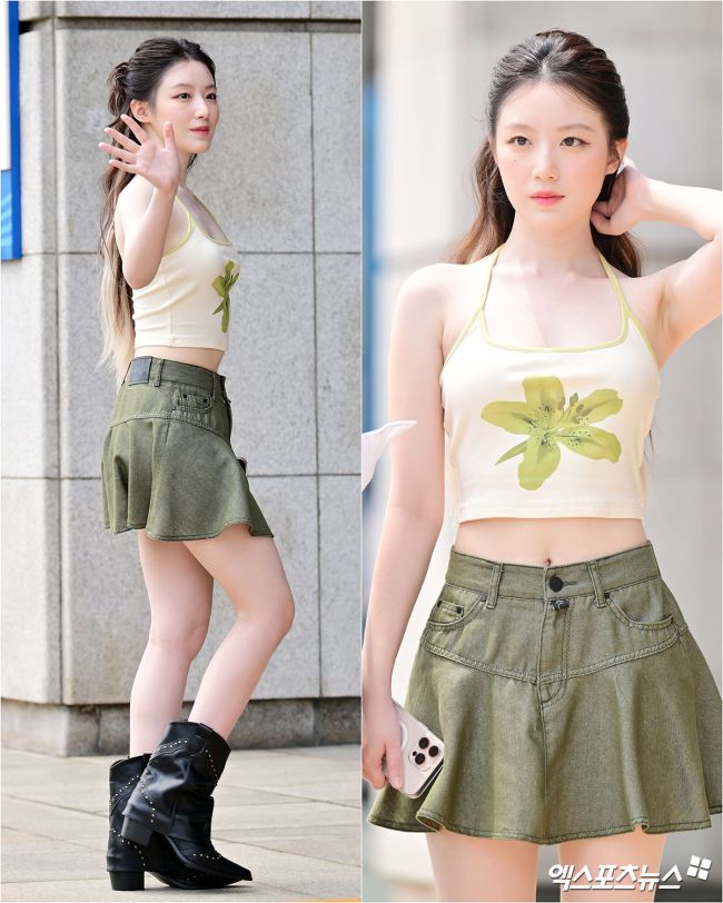 그룹 아이들(미연, 민니, 소연, 우기, 슈화)이 20일 오후 서울 여의도 KBS에서 진행된 KBS 쿨FM 라디오 '이은지의 가요광장' 사전녹음에 참석했다. 포즈취하는 아이들 슈화. 김한준 기자 kowel@xportsnews.com