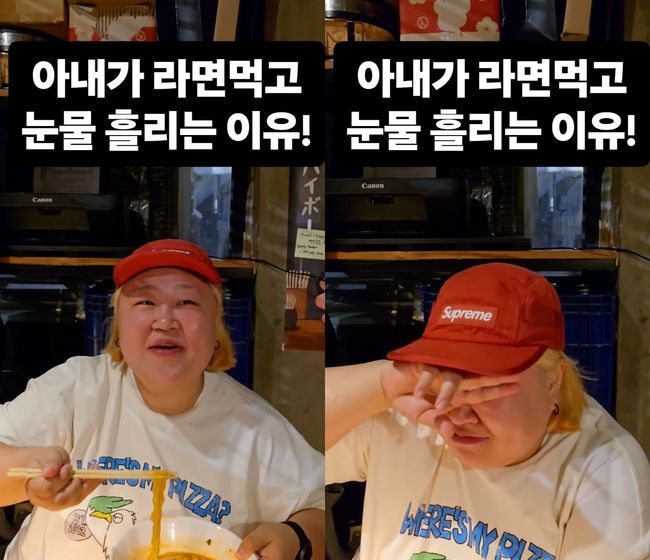 다이어트 중인 홍윤화가 라면을 먹고 눈물을 흘렸다. 지난 26일 김민기는 자신의 SNS를 통해 "울어....나도 뭉클"이라는 글과 함께 짧은 영상을 게재했다. 공개된 영상 속에는 한 음식점을 찾은 홍윤화-김민기 부부의 모습이 담겼다. 특히 홍윤화는 라면 한 그릇을 손에 들고 있는 가운데, 김민기는 "윤화 씨. 왜 갑자기 울려고 해요"라고 물었다. 이에 홍윤