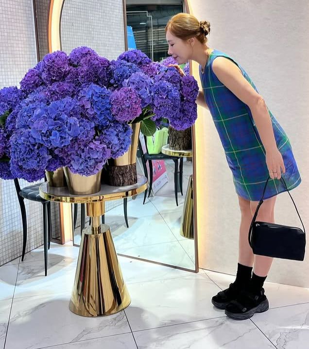 사진=신봉선 SNS 개그우먼 신봉선이 아름다운 비주얼을 뽐냈다. 신봉선은 지난 8일 자신의 인스타그램에 "오앙~~~ 꽃"이라는 짧은 문구와 함께 한 장의 사진을 게재했다. 공개된 사진 속에는 신봉선이 보라색 꽃들이 가득한 공간 앞에서 꽃내음을 맡고 있는 모습. 특히 11kg을 감량한 것으로 알려진 신봉선은 높은 콧대와 갸름한 턱선이 보이는 옆태를 자랑하고