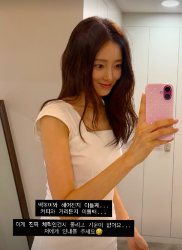 가수 임창정의 배우자 서하얀이 근황을 전했다. 24일 서하얀은 자신의 계정에 “떡볶이와 헤어진지 이틀째…커피와 거리둔지 이틀째”라며 “이게 진짜 체력인 건지 졸리고 기운이 없어요. 저에게 인내를 주세요”라는 글과 함께 한 장의 사진을 게재했다. 공개된 사진 속 서하얀은 하얀색 원피스를 입고 거울 셀카를 찍고 있는 모습이 담겼다. 특히 화사한 미모와 함께 포