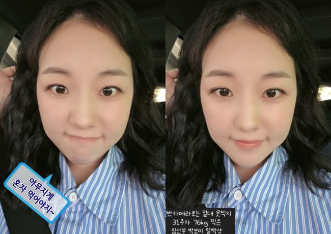 개그우먼 박보미가 만삭 근황을 공유했다. 13일 박보미는 자신의 소셜 계정에 "임산부 일상. 1번 2번 한라봉 코가 된 보미의 얼빡샷"이라며 사진을 업로드 했다. 공개된 사진에는 카메라 어플의 필터를 이용해 찍은 박보미의 셀카가 담겼다. 박보미는 "일반 카메라로는 절대 못찍지. 31주차 76kg 찍은 임산부 박보미 얼빡샷"이라고 털어놨다. 이어 그는 "3번