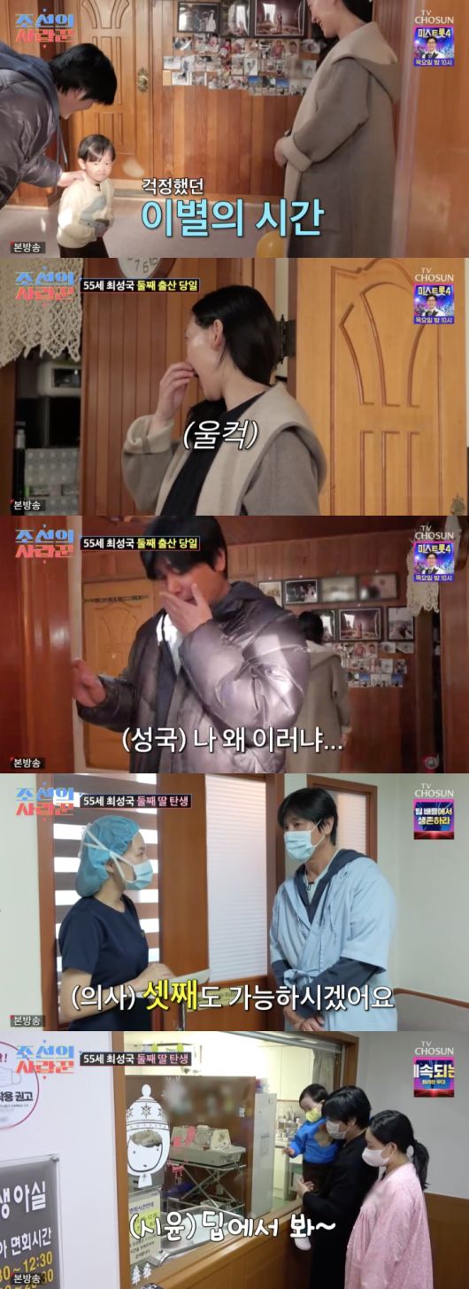 방송 시청 후 작성된 리뷰 기사입니다. 최성국이 셋째 임신에 희망적인 이야기를 들었다. 29일 방송된 TV조선 ‘조선의 사랑꾼’에서는 최성국 부부의 둘째 출산기가 그려졌다. 출산을 위해 첫째 아들을 어머니 집에 맡긴 최성국의 아내는 시무룩한 첫째를 보며 울컥했다. 이런 마음을 아는지 첫째는 “걱정 마세요”라고 최성국과 아내를 다독였다. 최성국 또한 첫째와