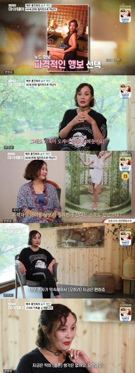 배우 홍진희가 각종 루머에 대해서 해명했다. 31일 오후 방송된 TV조선 '스타다큐 마이웨이'에는 홍진희가 자신을 둘러싼 루머들을 비롯 인생사를 허심탄회하게 고백하는 내용이 담겼다. 1981년 MBC 14기 공채 탤런트로 데뷔한 홍진희는 80~90년대 활발한 활동으로 안방극장을 휩쓸었다. 그러나 200년대 돌연 은퇴를 선언, 필리핀으로 떠났다. 그러나 그를