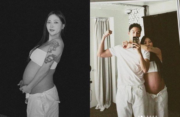 댄서 허니제이가 만삭 화보를 공개했다. 허니제이는 31일 자신의 인스타그램에 "성질급해서 실시간으로 그냥 올려버리기"라며 여러 장의 사진을 업로드 했다. 사진에는 브라톱을 입은 채 만삭의 배를 훤히 드러낸 허니제이의 모습이 담겼다. 그는 볼록하게 솟아오른 배를 두 손으로 소중하게 감싼 채 포즈를 취하고 있다. 이어 또 다른 사진에는 허니제이의 남편 정담도