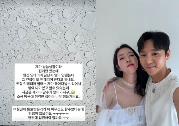 캣츠 출신 김지혜가 임신 중 고통을 호소했다. 김지혜는 26일 개인 채널에 “제가 눕눕 생활이라 집에만 있는데 윗집 인테리어 끝난 지 얼마 안 됐는데 그 옆집이 또 인테리어 한다고 하네요.. 윗집 인테리어 할 때는 제가 돌아다닐 수 있어서 밖에 나가있고 할 수 있었는데 지금은 제가 나갈 수가 없어가지고. 소음 방음에 취약한 집이라 너무 힘들거든요”라는 글을