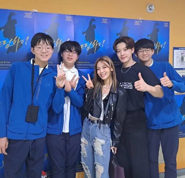 왼쪽부터 송일국 아들 대한, 만세, 가수 선예, 세븐, 민국. [서울=뉴시스] 최지윤 기자 = 배우 송일국(53)이 삼둥이 근황을 공개했다. 송일국은 26일 인스타그램에 세 아들 사진을 올렸다. 사진 속 대한, 민국, 만세는 중학교 1학년인데도 가수 세븐, 그룹 '원더걸스' 출신 선예보다 키가 컸다. "뮤지컬 '드림하이', 중학생을 둔 부모님께 아이들과 함