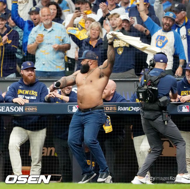 [사진] 전 밀워키 선수 에릭 테임즈가 NLCS 2차전을 앞두고 유니폼 상의를 벗은 채 열광적인 응원을 하고 있다. ⓒGettyimages(무단전재 및 재배포 금지) 밀워키 선수 시절 에릭 테임즈가 팬들에게 사인을 해주고 있다. /OSEN DB KBO리그에서 전무후무한 40홈런-40도루 대기록을 세운 ‘원조 역수출’ 에릭 테임즈(39)가 유니폼을 찢는 퍼포