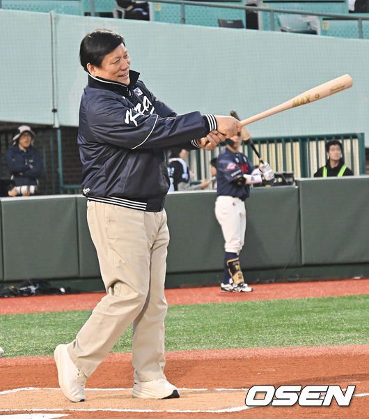 20일 울산 문수야구장에서 2026 메디힐 KBO 퓨처스리그 울산 웨일즈와 롯데 자이언츠의 경기가 열렸다. 울산은 오카다를 선발로, 롯데는 현도훈을 선발로 출전시켰다. 허구연 KBO 총재가 시타를 하고 있다. 2026.03.20 / foto0307@osen.co.kr