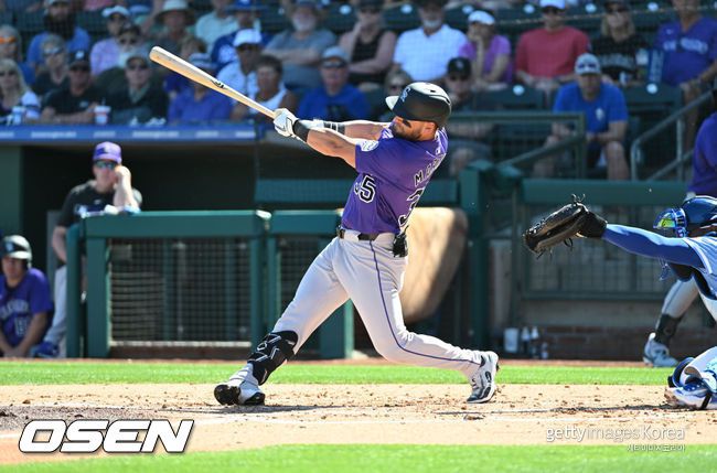 [사진] 콜로라도 닉 마티니. ⓒGettyimages(무단전재 및 재배포 금지) 2022년 KBO리그 NC 다이노스에서 뛰었던 외야수 닉 마티니(35·콜로라도 로키스)가 2년 연속 메이저리그 개막 로스터에 들어가더니 개막 3연전부터 타율 4할대 맹타를 휘둘렀다. 마티니는 지난달 31일(이하 한국시간) 미국 플로리다주 탬파 조지 M. 스타인브레너 필드에서 열