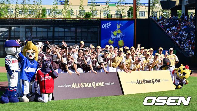 12일 오후 대전 한화생명볼파크에서 2025 신한 SOL뱅크 KBO 올스타전이 열렸다. 13년 만에 대전에서 열리는 KBO 올스타전은 드림 올스타와 나눔올스타 대표로 나선 총 30명의 선수가 치열한 승부를 펼친다. 경기에 앞서 참가 선수들이 단체사진을 찍고 있다. 2025.07.12 / soul1014@osen.co.kr