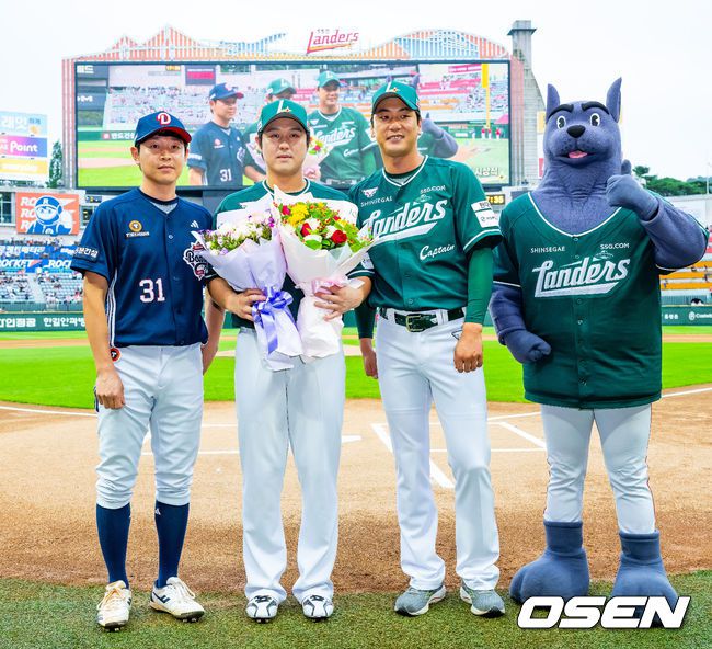 19일 인천 SSG랜더스필드에서 ‘2025 신한 SOL Bank KBO리그’ SSG 랜더스와 두산 베어스의 경기가 열렸다. SSG는 드류 앤더슨, 두산은 콜어빈은 선발로 내세웠다. 경기 전 SSG 최정의 500홈런 시상식이 진행되고 있다. 2025.07.19 /rumi@osen.co.kr