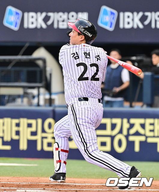 30일 오후 서울 잠실구장에서 ‘2025 신한 SOL BANK KBO리그’ LG 트윈스와 KT 위즈의 경기가 진행됐다. 이날 LG는 손주영(8승 6패)을 KT는 패트릭(0승 0패)을 선발투수로 내세웠다. 1회말 LG 김현수가 안타를 날리고 있다. 김현수는 이 안타로 KBO 통산 3번째 16시즌 연속 100안타를 달성했다. 2025.07.30 / soul10