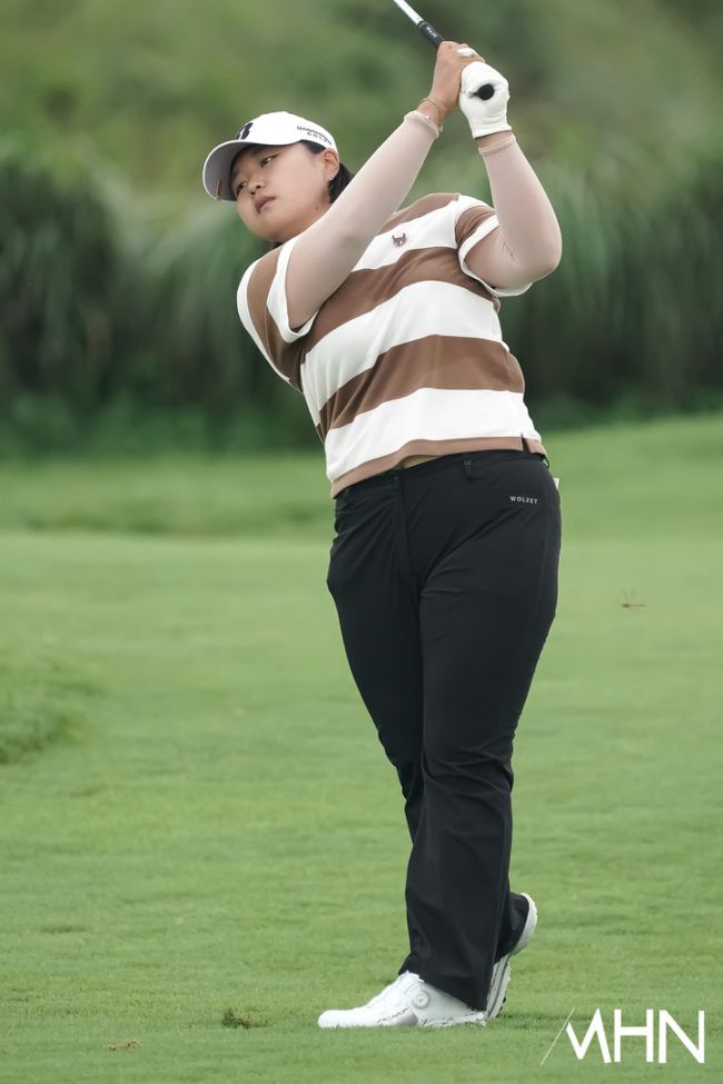10일 제주도 서귀포시에 위치한 사이프러스 골프&리조트(파72/6,586야드)에서 '제12회 제주삼다수 마스터스'(총상금 10억원, 우승상금 1억8천만 원) 최종 4라운드가 열렸다. 신다인이 1번홀 경기를 펼치고 있다.