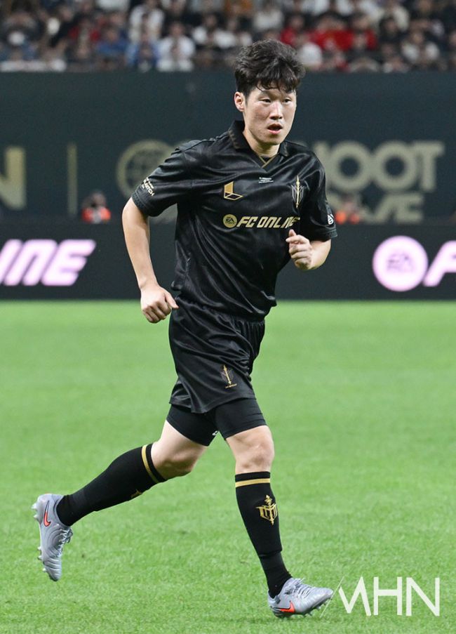 14일 서울 마포구 서울월드컵경기장에서 2025 넥슨 아이콘매치 메인 매치가 열렸다. FC 스피어 박지성이 경기를 펼치고 있다. 한편, 메인 매치는 2000년대 세계 축구를 호령했던 호나우지뉴, 가레스 베일, 웨인 루니, 디디에 드로그바, 스티븐 제라드, 티에리 앙리, 박지성, 리오 퍼디낸드 등이 '꿈의 대결'을 펼친다. '공격수팀'(FC 스피어)과 '수비