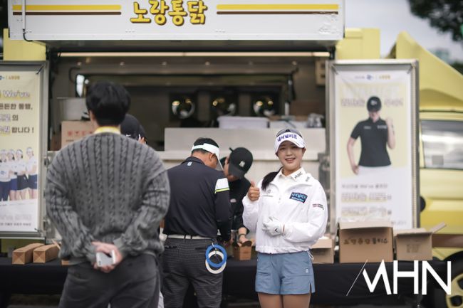 9일 경기 용인애 위치한 88컨트리클럽(파72ㅣ6,748야드)에서 신규 대회인 'K-FOOD 놀부·화미 마스터즈(총상금 12억 원ㅣ우승 상금 2억1천6백만 원) 공식연습라운드 경기가 열렸다. 전효민(내셔널비프)이 간식을 기다리고 있다.