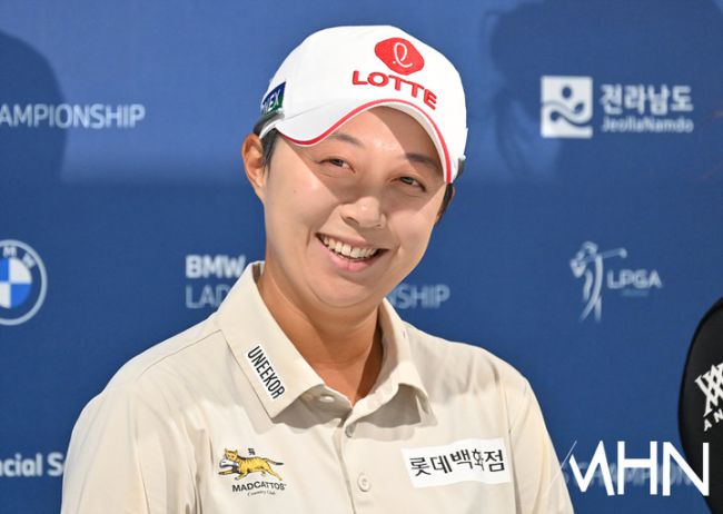 미국여자프로골프(LPGA)투어 대회인 BMW 레이디스 챔피언십(총상금 230만 달러) 미디어데이가 윤이나, 야마시타 미유(Yamashita Miyuu), 김효주, 한나 그린(Hannah Green), 김아림, 유해란이 참석한 가운데 15일 오후 전남 해남군 파인비치 골프링크스(파72)에서 진행됐다. 이날 미디어데이에 참석한 김효주가 질의응답 시간을 갖고 있