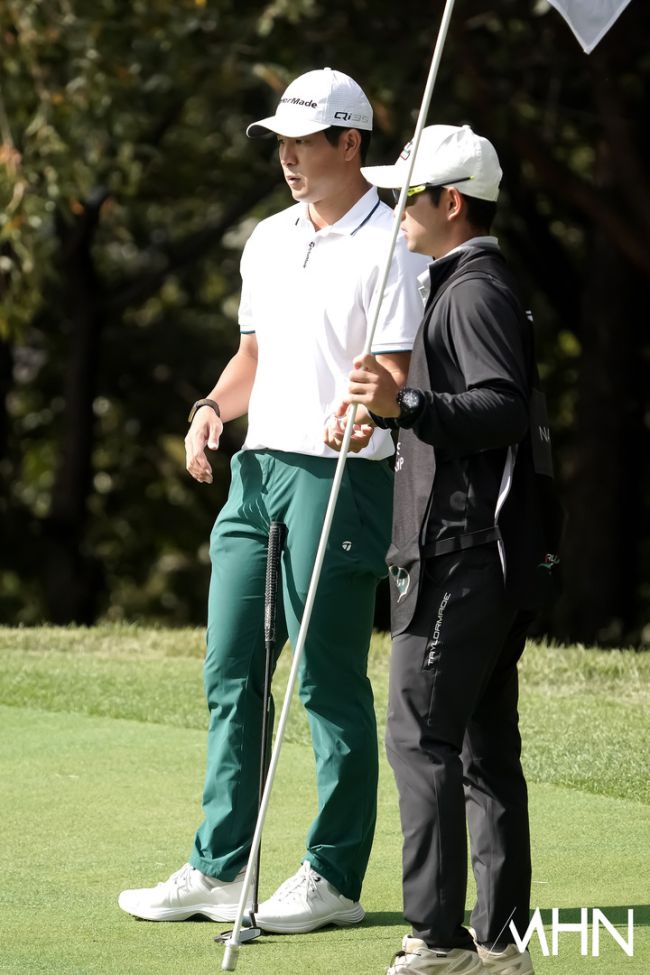23일 충남 천안시에 위치한 우정힐스 컨트리클럽(파72ㅣ7,367야드)에서 DP World Tour '제네시스 챔피언십(총상금 4백만 달러ㅣ우승 상금 68만 달러) 1라운드가 열렸다. 나카지마 케이타(Keita NAKAJIMA)가 4번홀 경기를 펼치고 있다.