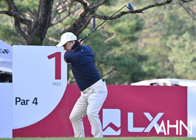 한국미드아마추어골프연맹(KMAGF)이 주관하는 'LX 제16회 KMAGF 미드아마 챔피언십' 최종 라운드가 29일 충북 청주시 세레니티CC에서 진행됐다. 이날 신인식이 1번 홀 티샷을 하고 있다.