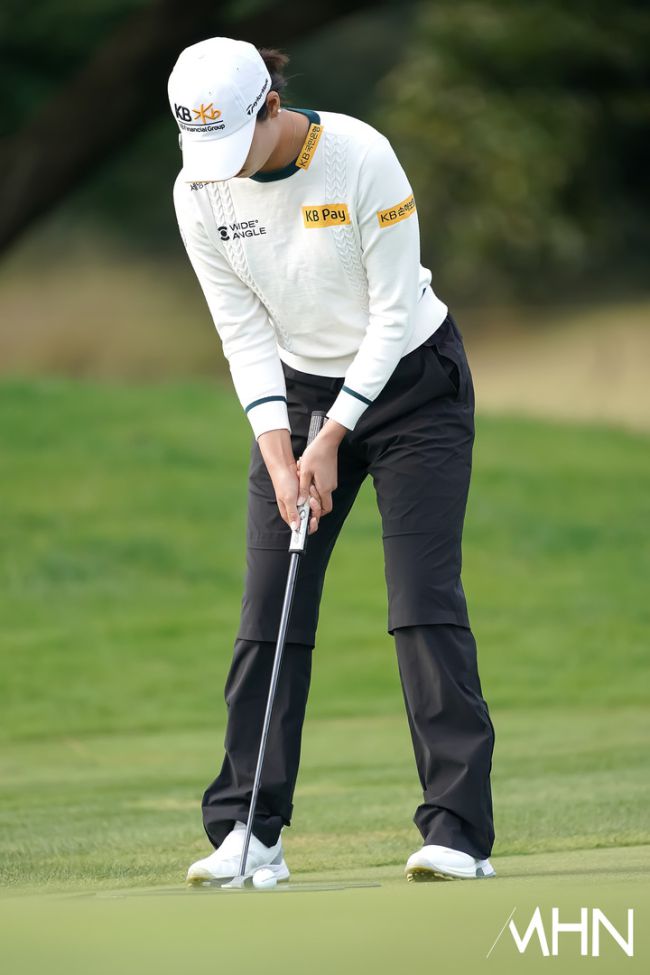 29일 제주도 제주시에 위치한 엘리시안 제주 컨트리클럽(파72ㅣ6,816야드)에서 2025 시즌 서른 번째 대회 인 'S-OIL 챔피언십 2025(총상금 10억 원ㅣ우승 상금 1억 8천만 원) 공식연습라운드가 열렸다. 방신실(KB금융그룹)이 연습 그린에서 연습을 하고 있다.