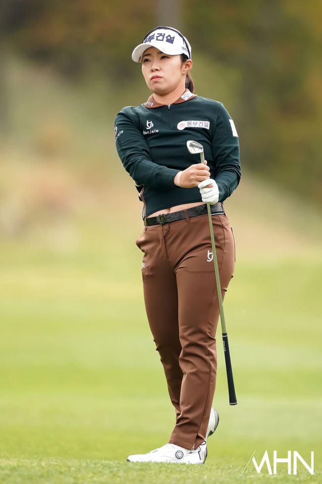 8일 경기도 파주시에 위치한 서원힐스 컨트리클럽(파72ㅣ6,556야드)에서 2025 시즌 최종전 '대보 하우스디 챔피언십'(총상금 10억 원ㅣ우승 상금 2억 5천만 원) 2라운드 경기가 열렸다. 김수지(동부건설)가 2번홀 경기를 펼치고 있다.