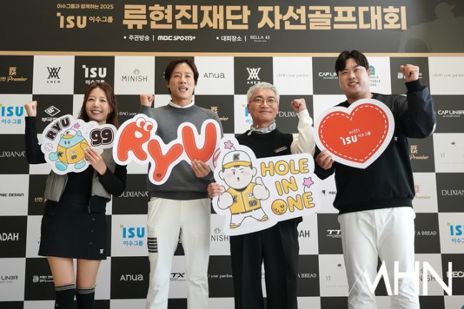 류현진재단(이사장 류현진)이 '이수그룹과 함께하는 2025 자선골프대회'가 12일 오전 강원도 횡성군 벨라45 컨트리클럽에서 진행됐다. 이날 우지원-조재윤이 포토월에 서서 포즈를 취하고 있다. 올해 2회째를 맞는 이번 대회는 유소년 야구 꿈나무 장학금 지원과 희귀난치병 환아 치료 및 교육비 지원을 위한 기금 마련을 목적으로 진행된다. 대회에는 류현진 이사장