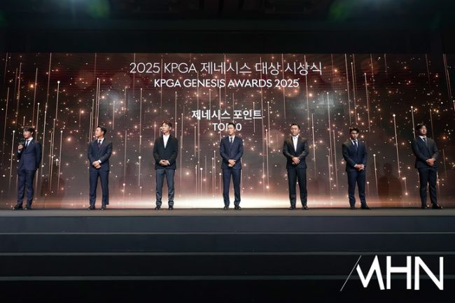 12일 서울 용산구 소재 스위스그랜드호텔에서 한국프로골프협회(KPGA) '2025KPGA 제네시스 대상시상식'이 열렸다. 송민혁이 제네시스 포인트 톱10 수상하고 있다. -제네시스 대상 : 옥태훈 -상금랭킹 1위 : 옥태훈 -한국골프기자단 선정 기량발전상(Most Improved Player) : 옥태훈 -명출상(신인상) : 사돔 깨우깐자나 -덕춘상(최저타