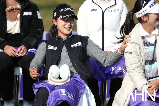 14일 경주에 위치한 경주 마우나오션 컨트리클럽(파72ㅣ6,556야드)에서 2025 시즌 대미를 장식할 '위믹스 챔피언십 2025'(총상금 10억 원ㅣ우승 상금 3억 원) DAY1 싱글매치플레이 조편성 진행 됐다. 박현경(메디힐)이 조 추첨을 하고 있다. 10:03 이예원(6)-김민주(23)ㅣ10:11 이가영(8)-지하솔(21)ㅣ10:19 이동은(5)-고지