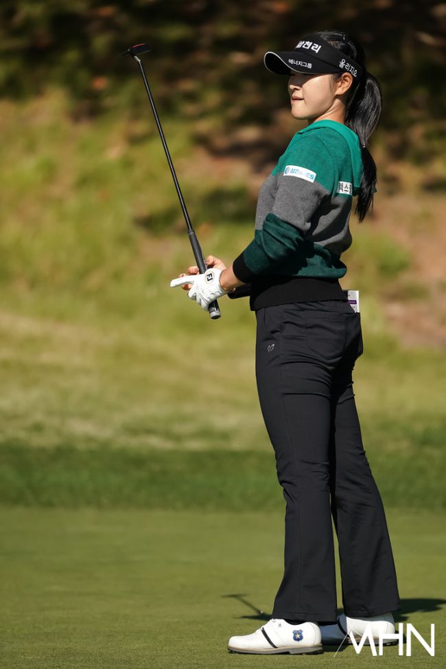 15일 경주에 위치한 경주 마우나오션 컨트리클럽(파72ㅣ6,556야드)에서 2025 시즌 대미를 장식할 '위믹스 챔피언십 2025'(총상금 10억 원ㅣ우승 상금 3억 원) DAY1 싱글매치플레이가 열렸다. 유현조가 4번홀 경기를 펼치고 있다. 황유민(롯데)이 유현조(삼천리)를 상대로 4&3로 승리를 했다.